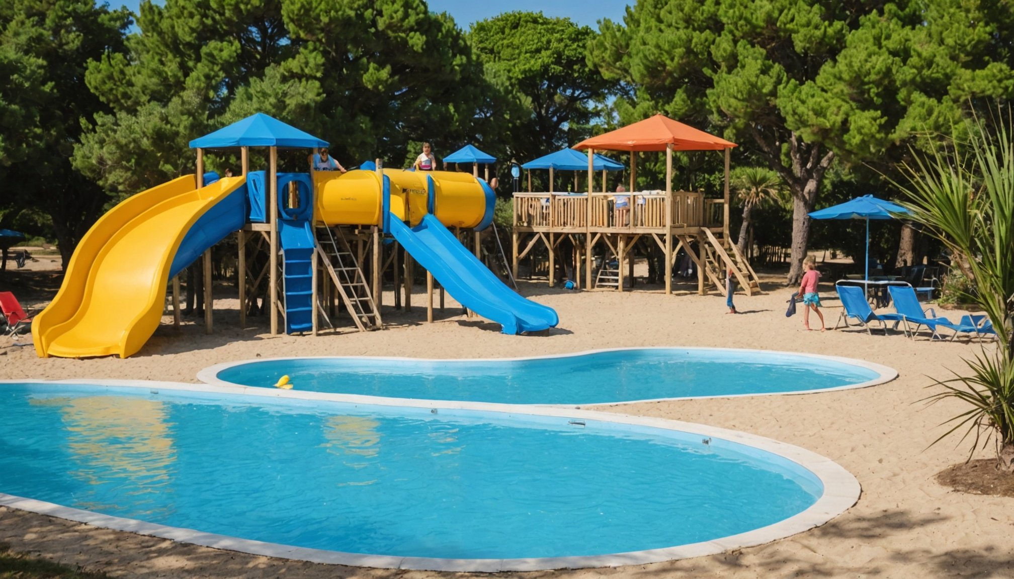 Camping Verébleu séduit par son immense parc aquatique chauffé intégrant toboggans, rivière lente et jeux d’eau, ainsi que par un accueil familial soigné depuis plus de 40 ans. Les emplacements ombragés, la proximité des plages et les clubs enfants garantissent des vacances sans soucis. L’accès facile aux pistes cyclables permet de partir à la découverte de l’île en toute autonomie.